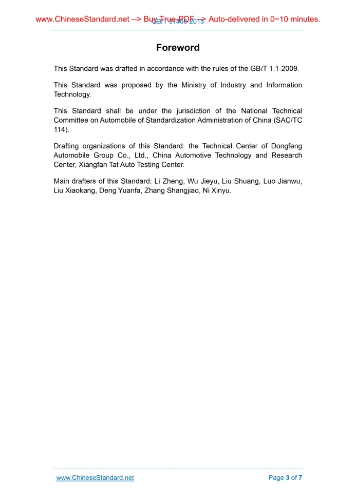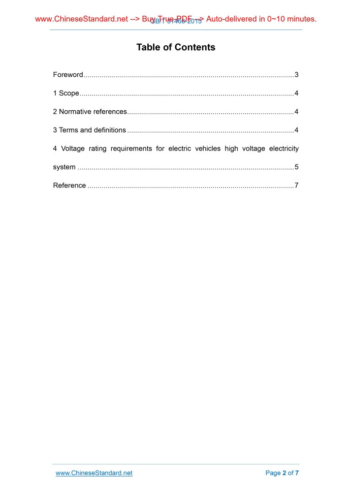 Similar standardsGB/T 31466-2015: Voltage ratings of electric vehicles high voltage electricity system---This is an excerpt. Full copy of true-PDF in English version (including equations, symbols, images, flow-chart, tables, and figures etc.), auto-downloaded/delivered in 9 seconds, can be purchased online: https://www.ChineseStandard.net/PDF.aspx/GBT31466-2015GB ICS 43.080 T 47 National Standard of the People’s Republic of China Voltage ratings of electric vehicles high voltage electricity system Issued on: MAY 15, 2015 Implemented on: DECEMBER 1, 2015 Issued by. General Administration of Quality Supervision, Inspection and Quarantine; Standardization Administration Committee. Table of ContentsForeword ... 3 1 Scope ... 4 2 Normative references ... 4 3 Terms and definitions ... 4 4 Voltage rating requirements for electric vehicles high voltage electricity system ... 5 Reference ... 7ForewordThis Standard was drafted in accordance with the rules of the GB/T 1.1-2009. This Standard was proposed by the Ministry of Industry and Information Technology. This Standard shall be under the jurisdiction of the National Technical Committee on Automobile of Standardization Administration of China (SAC/TC 114). Drafting organizations of this Standard. the Technical Center of Dongfeng Automobile Group Co., Ltd., China Automotive Technology and Research Center, Xiangfan Tat Auto Testing Center. Main drafters of this Standard. Li Zheng, Wu Jieyu, Liu Shuang, Luo Jianwu, Liu Xiaokang, Deng Yuanfa, Zhang Shangjiao, Ni Xinyu. Voltage ratings of electric vehicles high voltage electricity system1 ScopeThis Standard specifies the DC voltage rating requirements for electric vehicles’ high voltage system. This Standard applies to pure electric vehicles and hybrid electric vehicles.2 Normative referencesThe following documents are essential to the application of this document. For the dated documents, only the versions with the dates indicated are applicable to this document; for the undated documents, only the latest version (including all the amendments) are applicable to this Standard. GB/T 2900.41 Electrotechnical terminology - Primary and secondary cells and batteries GB/T 2900.50 Electrotechnical terminology - Generation transmission and distribution of electricity - General GB/T 19596-2004 Terminology of electric vehicles3 Terms and definitionsTerms and definitions determined by GB/T 19596, GB/T 2900.41, GB/T2900.50 and the following ones are applicable to this document. 3.1 Power battery system Electric vehicle power supply system consisted of one or more than one battery and the corresponding accessories (battery management system, high voltage circuit, low voltage circuit, thermal management equipment and mechanical assembly). 3.2 Electric machine and controller system Drive and / or power generation units composed of motor [GB/T 19596-2004, definition 3.2.1.1] and motor controller [GB/T 19596-2004, definition 3.2.1.2]. Reference [1] GB/T 22068-2008 Automobile air conditioning electrically driven compressor assembly [2] GB/T 24347-2009 The DC/DC converter for electric vehicles ......Source: Above contents are excerpted from the full-copy PDF -- translated/reviewed by: www.ChineseStandard.net / Wayne Zheng et al. Tips & Frequently Asked Questions:Question 1: How long will the true-PDF of English version of GB/T 31466-2015 be delivered?Answer: The full copy PDF of English version of GB/T 31466-2015 can be downloaded in 9 seconds, and it will also be emailed to you in 9 seconds (double mechanisms to ensure the delivery reliably), with PDF-invoice.Question 2: Can I share the purchased PDF of GB/T 31466-2015_English with my colleagues?Answer: Yes. The purchased PDF of GB/T 31466-2015_English will be deemed to be sold to your employer/organization who actually paid for it, including your colleagues and your employer's intranet.Question 3: Does the price include tax/VAT?Answer: Yes. Our tax invoice, downloaded/delivered in 9 seconds, includes all tax/VAT and complies with 100+ countries' tax regulations (tax exempted in 100+ countries) -- See Avoidance of Double Taxation Agreements (DTAs): List of DTAs signed between Singapore and 100+ countriesQuestion 4: Do you accept my currency other than USD?Answer: Yes. www.ChineseStandard.us -- GB/T 31466-2015 -- Click this link and select your country/currency to pay, the exact amount in your currency will be printed on the invoice. Full PDF will also be downloaded/emailed in 9 seconds.How to buy and download a true PDF of English version of GB/T 31466-2015?A step-by-step guide to download PDF of GB/T 31466-2015_EnglishStep 1: Visit website https://www.ChineseStandard.net (Pay in USD), or https://www.ChineseStandard.us (Pay in any currencies such as Euro, KRW, JPY, AUD).Step 2: Search keyword "GB/T 31466-2015". Step 3: Click "Add to Cart". If multiple PDFs are required, repeat steps 2 and 3 to add up to 12 PDFs to cart. Step 4: Select payment option (Via payment agents Stripe or PayPal). Step 5: Customize Tax Invoice -- Fill up your email etc. Step 6: Click "Checkout". Step 7: Make payment by credit card, PayPal, Google Pay etc. After the payment is completed and in 9 seconds, you will receive 2 emails attached with the purchased PDFs and PDF-invoice, respectively. Step 8: Optional -- Go to download PDF. Step 9: Optional -- Click Open/Download PDF to download PDFs and invoice. See screenshots for above steps: Steps 1~3 Steps 4~6 Step 7 Step 8 Step 9 |