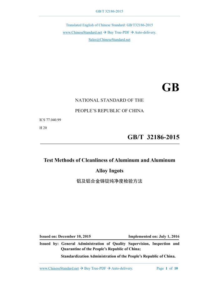 GB/T 32186-2015: Test methods of cleanliness of aluminium and aluminium alloy ingots Delivery: 9 seconds. True-PDF full-copy in English & invoice will be downloaded + auto-delivered via email. See step-by-step procedure Status: Valid