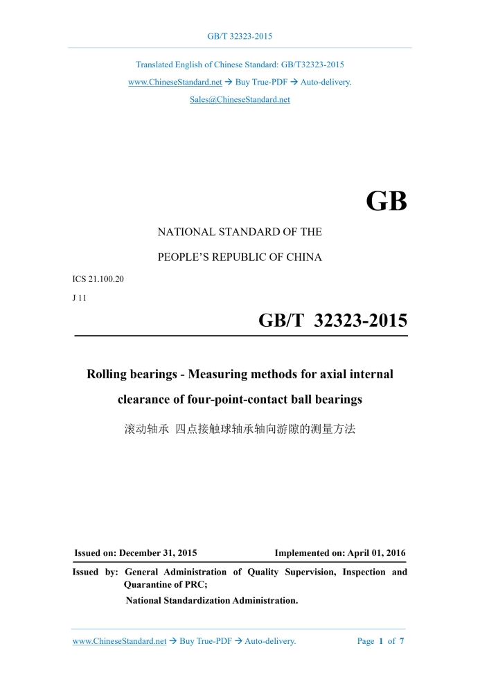 GB/T 32323-2015: Rolling bearings - Measuring methods for axial internal clearance of four-point-contact ball bearings Delivery: 9 seconds. True-PDF full-copy in English & invoice will be downloaded + auto-delivered via email. See step-by-step procedure Status: Valid