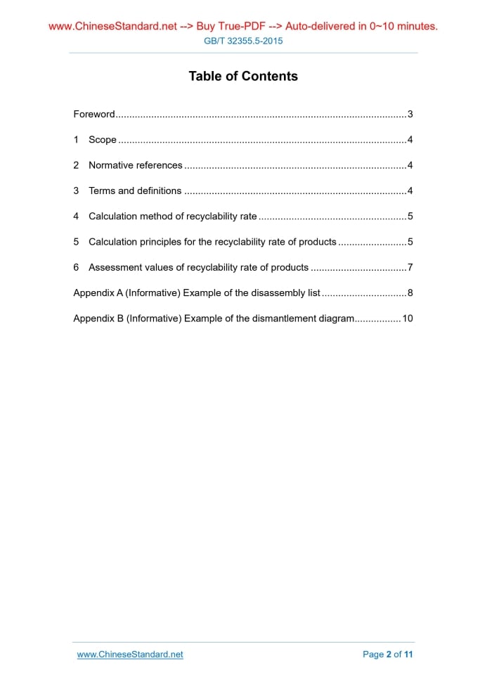 Foreword ... 3 1 Scope ... 4 2 Normative references ... 4 3 Terms and definitions ... 4 4 Calculation method of recyclability rate ... 5 5 Calculation principles for the recyclability rate of products ... 5 6 Assessment values of recyclability rate of products ... 7 Appendix A (Informative) Example of the disassembly list ... 8 Appendix B (Informative) Example of the dismantlement diagram ... 10