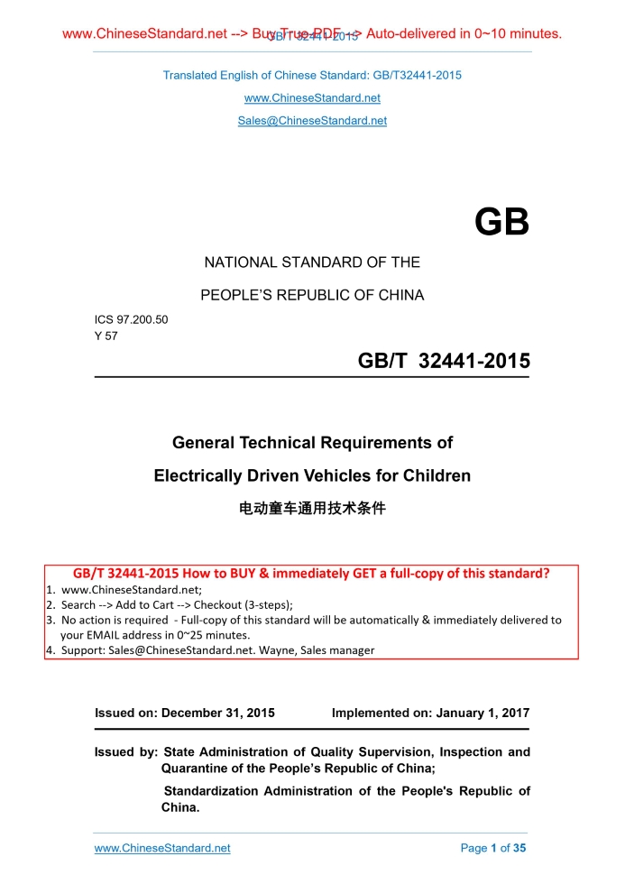 GB/T 32441-2015: General Technical Requirements of Electrically Driven Vehicles for Children Delivery: 9 seconds. True-PDF full-copy in English & invoice will be downloaded + auto-delivered via email. See step-by-step procedure Status: Valid