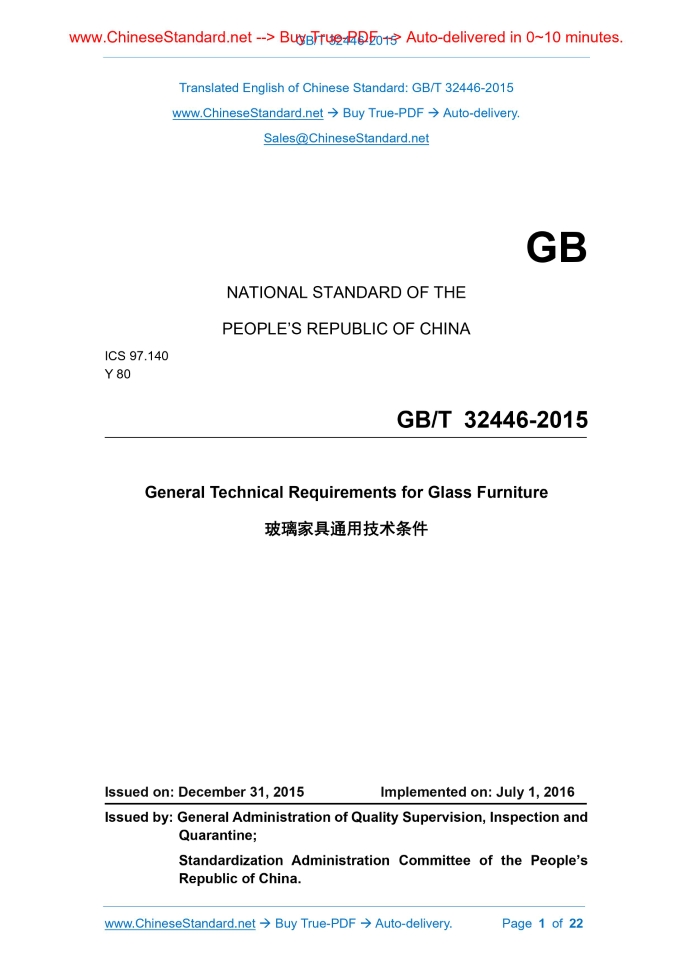 GB/T 32446-2015: General Technical Requirements for Glass Furniture Delivery: 9 seconds. True-PDF full-copy in English & invoice will be downloaded + auto-delivered via email. See step-by-step procedure Status: Obsolete GB/T 32446: Historical versions