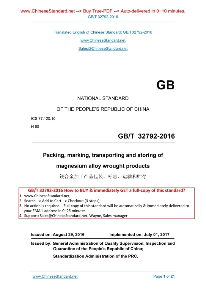 GB/T 32792-2016: Packing, marking, transporting and storing of magnesium alloy wrought products Delivery: 9 seconds. True-PDF full-copy in English & invoice will be downloaded + auto-delivered via email. See step-by-step procedure Status: Valid