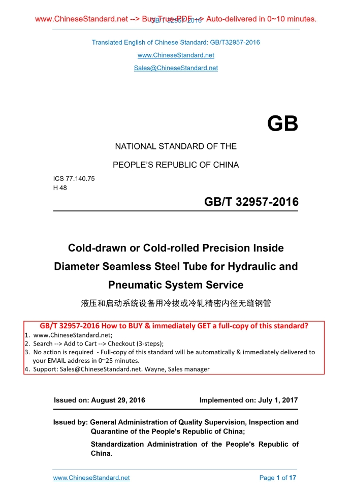 GB/T 32957-2016: Cold-drawn or Cold-rolled Precision Inside Diameter Seamless Steel Tube for Hydraulic and Pneumatic System Service Delivery: 9 seconds. True-PDF full-copy in English & invoice will be downloaded + auto-delivered via email. See step-by-step procedure Status: Valid