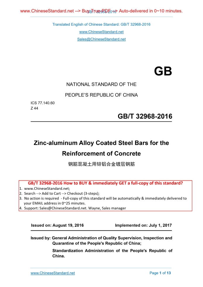 GB/T 32968-2016: Zinc-aluminum Alloy Coated Steel Bars for the Reinforcement of Concrete Delivery: 9 seconds. True-PDF full-copy in English & invoice will be downloaded + auto-delivered via email. See step-by-step procedure Status: Valid