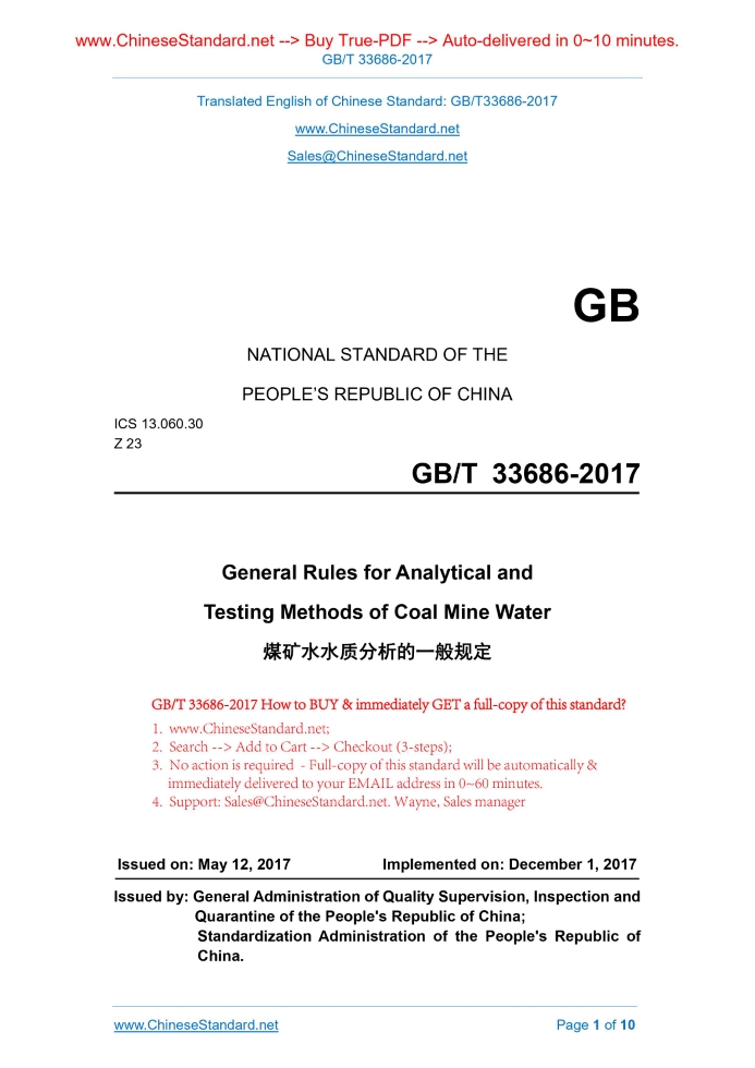 GB/T 33686-2017: General Rules for Analytical and Testing Methods of Coal Mine Water Delivery: 9 seconds. True-PDF full-copy in English & invoice will be downloaded + auto-delivered via email. See step-by-step procedure Status: Valid