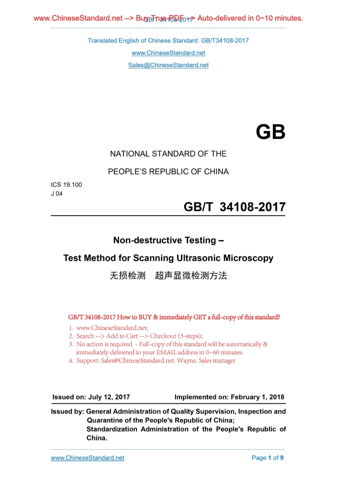 GB/T 34018-2017: Non-destructive testing -- Test method for scanning ultrasonic microscopy Delivery: 9 seconds. True-PDF full-copy in English & invoice will be downloaded + auto-delivered via email. See step-by-step procedure Status: Valid