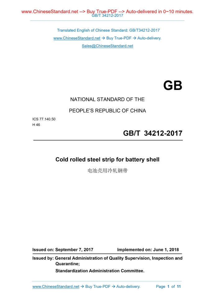 GB/T 34212-2017: Cold rolled steel strip for battery shell Delivery: 9 seconds. True-PDF full-copy in English & invoice will be downloaded + auto-delivered via email. See step-by-step procedure Status: Valid