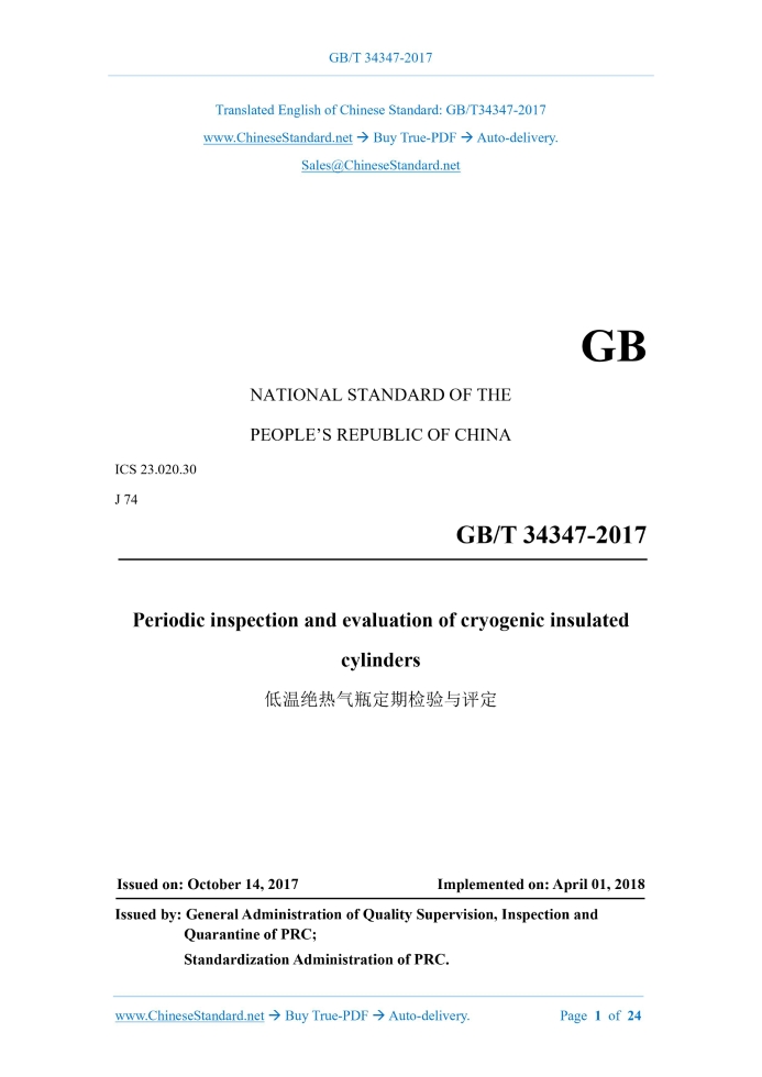 GB/T 34347-2017: Periodic inspection and evaluation of cryogenic insulated cylinders Delivery: 9 seconds. True-PDF full-copy in English & invoice will be downloaded + auto-delivered via email. See step-by-step procedure Status: Valid