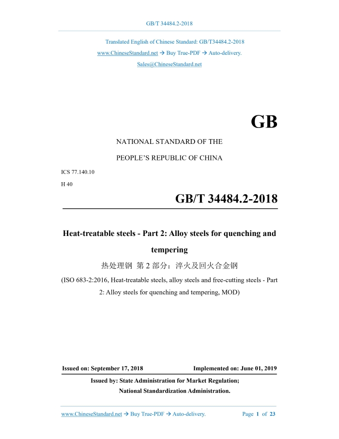 GB/T 34484.2-2018: Heat-treatable steels -- Part 2: Alloy steels for quenching and tempering Delivery: 9 seconds. True-PDF full-copy in English & invoice will be downloaded + auto-delivered via email. See step-by-step procedure Status: Valid