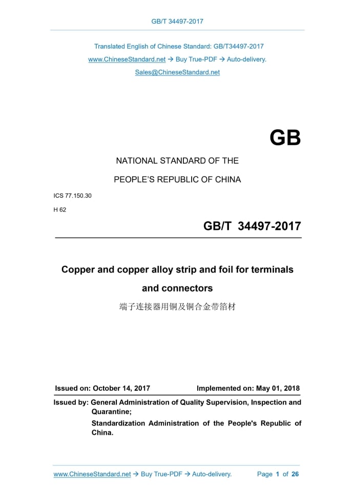 GB/T 34497-2017: Copper and copper alloy strip and foil for terminals and connectors Delivery: 9 seconds. True-PDF full-copy in English & invoice will be downloaded + auto-delivered via email. See step-by-step procedure Status: Obsolete GB/T 34497: Historical versions