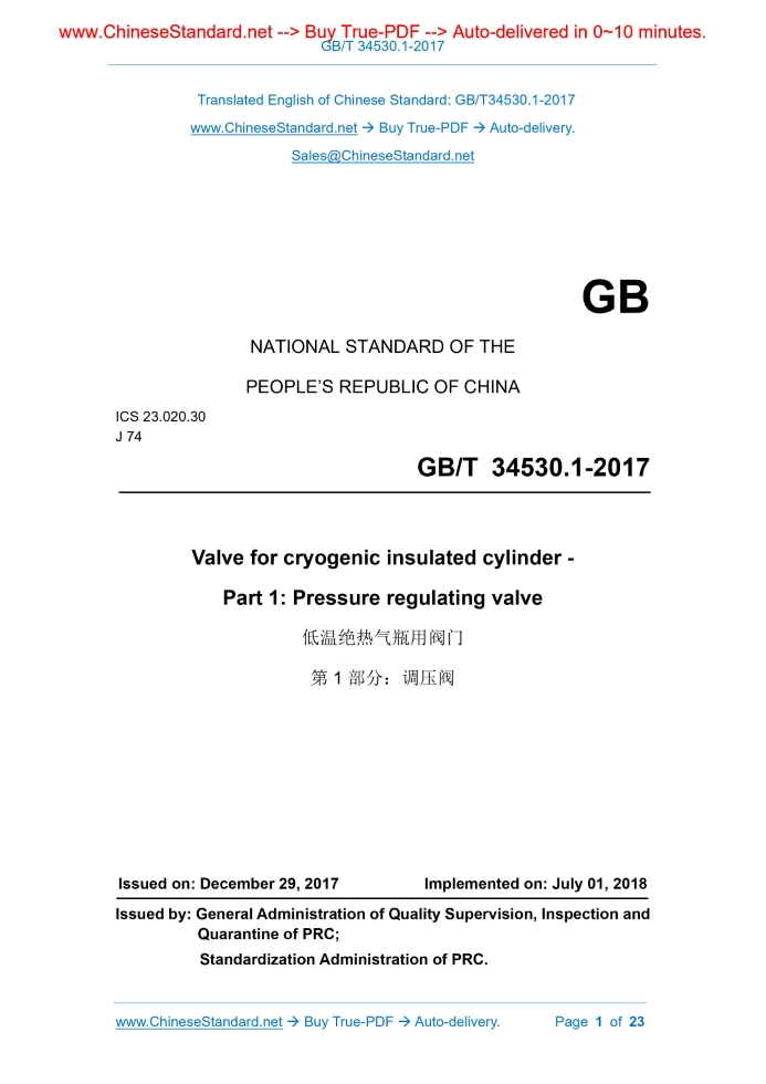 GB/T 34530.1-2017: Valve for cryogenic insulated cylinder - Part 1: Pressure regulating valve Delivery: 9 seconds. True-PDF full-copy in English & invoice will be downloaded + auto-delivered via email. See step-by-step procedure Status: Valid
