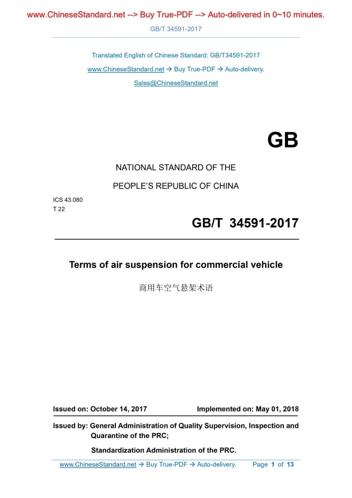 GB/T 34591-2017: Terms of air suspension for commercial vehicle Delivery: 9 seconds. True-PDF full-copy in English & invoice will be downloaded + auto-delivered via email. See step-by-step procedure Status: Valid