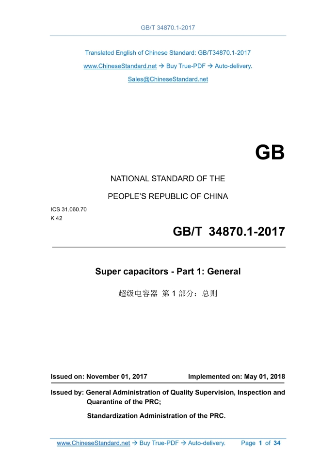 GB/T 34870.1-2017: Super capacitors - Part 1: General Delivery: 9 seconds. True-PDF full-copy in English & invoice will be downloaded + auto-delivered via email. See step-by-step procedure Status: Valid