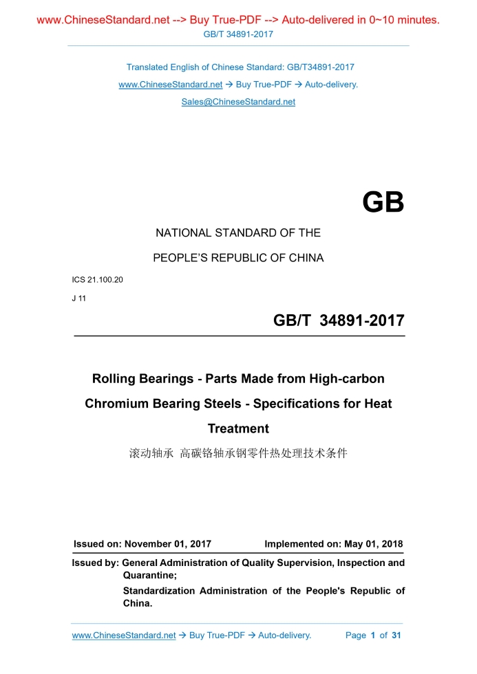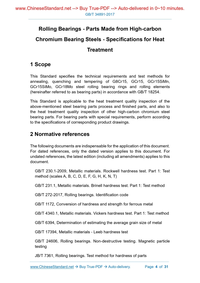 GB/T 34891-2017: Rolling Bearings - Parts Made from High-carbon Chromium Bearing Steels - Specifications for Heat Treatment Delivery: 9 seconds. True-PDF full-copy in English & invoice will be downloaded + auto-delivered via email. See step-by-step procedure Status: Valid