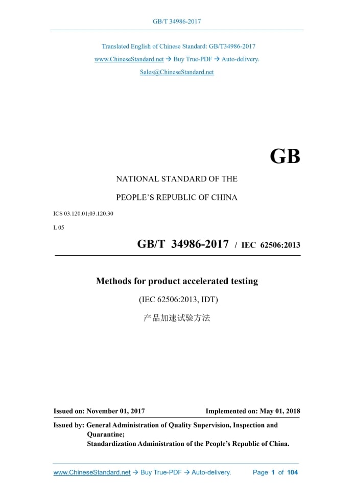 GB/T 34986-2017: Methods for product accelerated testing Delivery: 9 seconds. True-PDF full-copy in English & invoice will be downloaded + auto-delivered via email. See step-by-step procedure Status: Valid