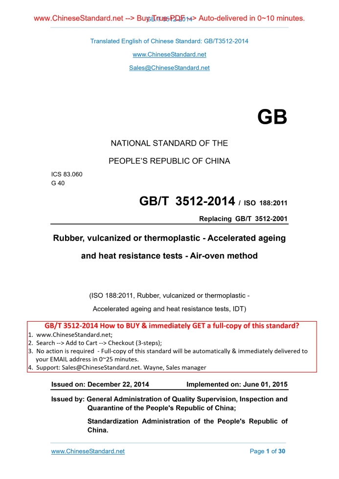 GB/T 3512-2014: Rubber, vulcanized or thermoplastic -- Accelerated ageing and heat resistance tests -- Air-oven method Delivery: 9 seconds. True-PDF full-copy in English & invoice will be downloaded + auto-delivered via email. See step-by-step procedure Status: Valid GB/T 3512: Historical versions
