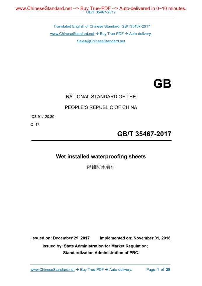 GB/T 35467-2017: Wet installed waterproofing sheets Delivery: 9 seconds. True-PDF full-copy in English & invoice will be downloaded + auto-delivered via email. See step-by-step procedure Status: Valid