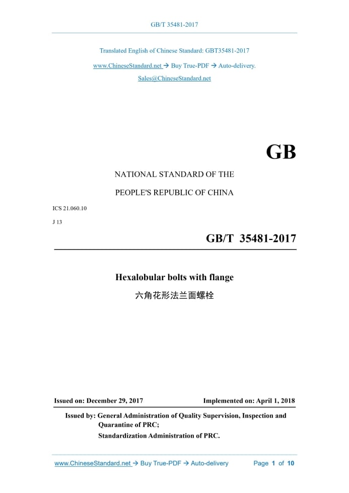 GB/T 35481-2017: Hexalobular bolts with flange Delivery: 9 seconds. True-PDF full-copy in English & invoice will be downloaded + auto-delivered via email. See step-by-step procedure Status: Valid