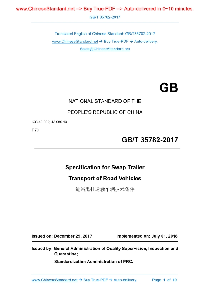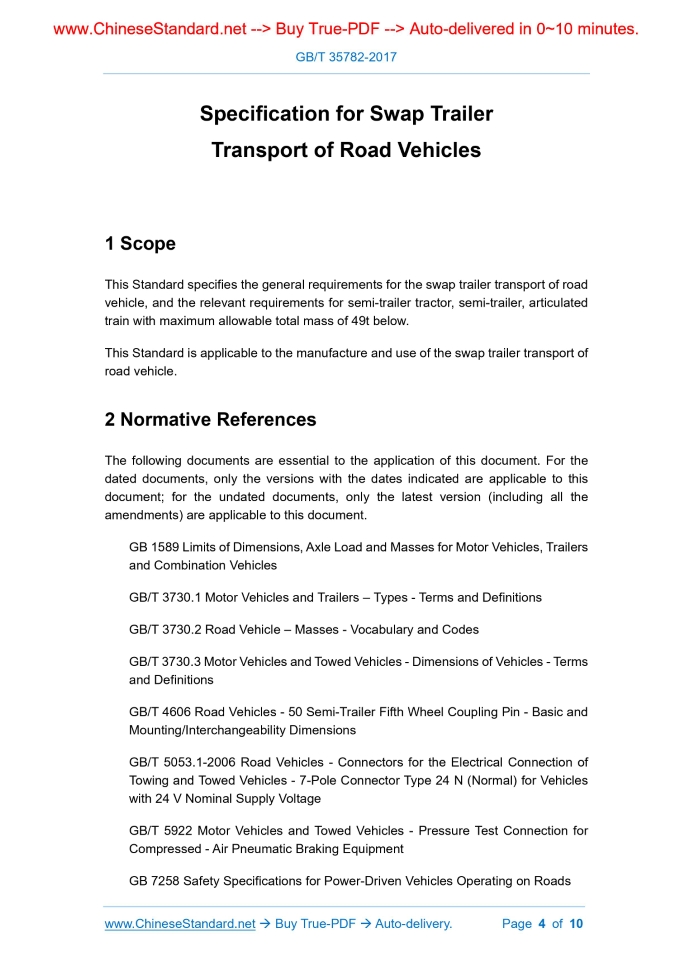 GB/T 35782-2017: Specification for Swap Trailer Transport of Road Vehicles Delivery: 9 seconds. True-PDF full-copy in English & invoice will be downloaded + auto-delivered via email. See step-by-step procedure Status: Valid