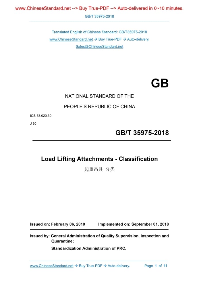 GB/T 35975-2018: Load Lifting Attachments - Classification Delivery: 9 seconds. True-PDF full-copy in English & invoice will be downloaded + auto-delivered via email. See step-by-step procedure Status: Valid