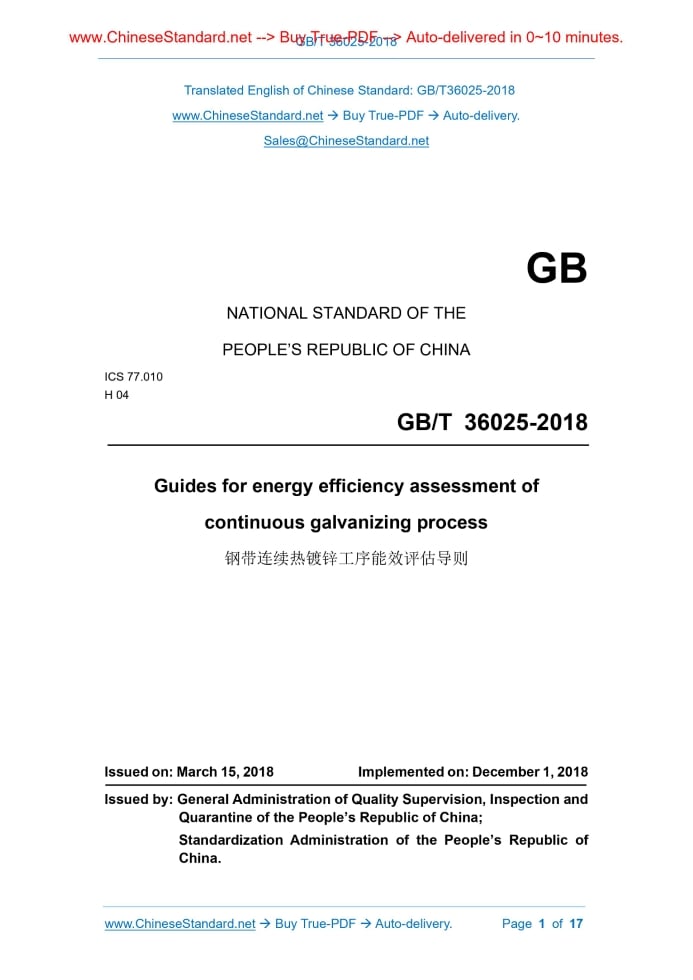 GB/T 36025-2018: Guides for energy efficiency assessment of continuous galvanizing process Delivery: 9 seconds. True-PDF full-copy in English & invoice will be downloaded + auto-delivered via email. See step-by-step procedure Status: Valid