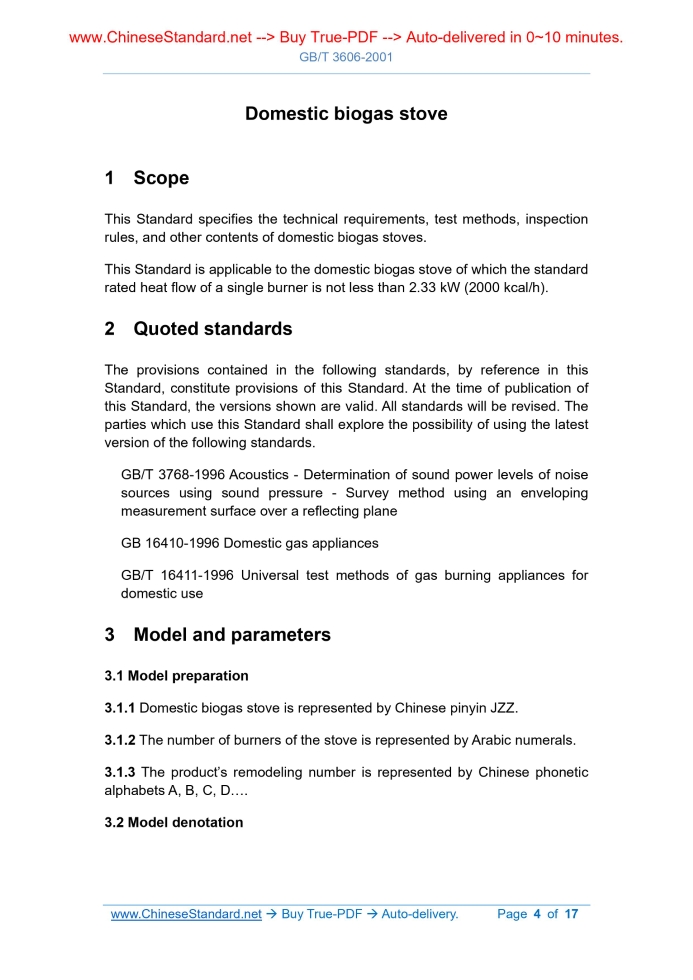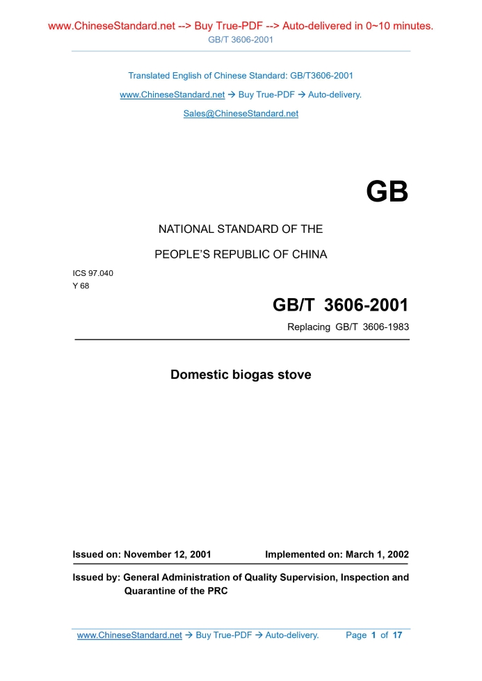 GB/T 3606-2001: Domestic biogas stove Delivery: 9 seconds. True-PDF full-copy in English & invoice will be downloaded + auto-delivered via email. See step-by-step procedure Status: Valid GB/T 3606: Historical versions