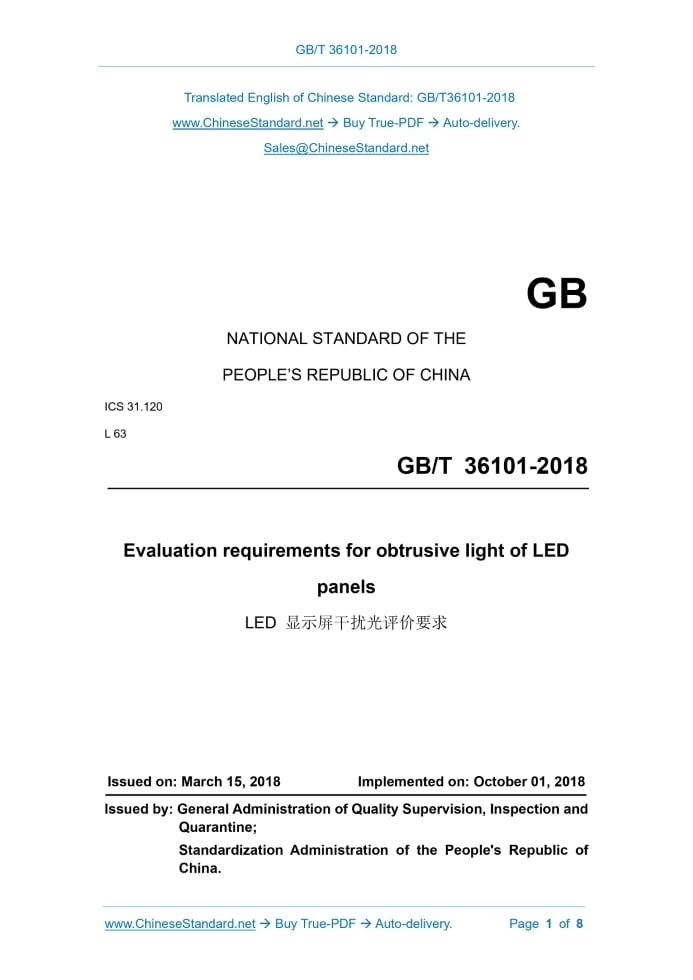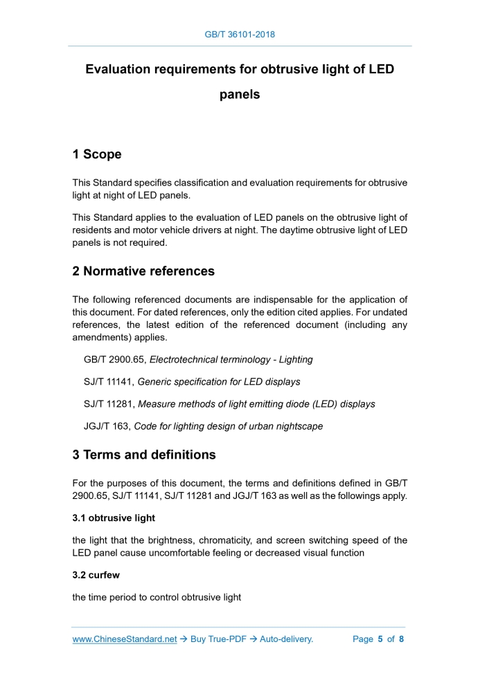 GB/T 36101-2018: Evaluation requirements for obtrusive light of LED panels Delivery: 9 seconds. True-PDF full-copy in English & invoice will be downloaded + auto-delivered via email. See step-by-step procedure Status: Valid