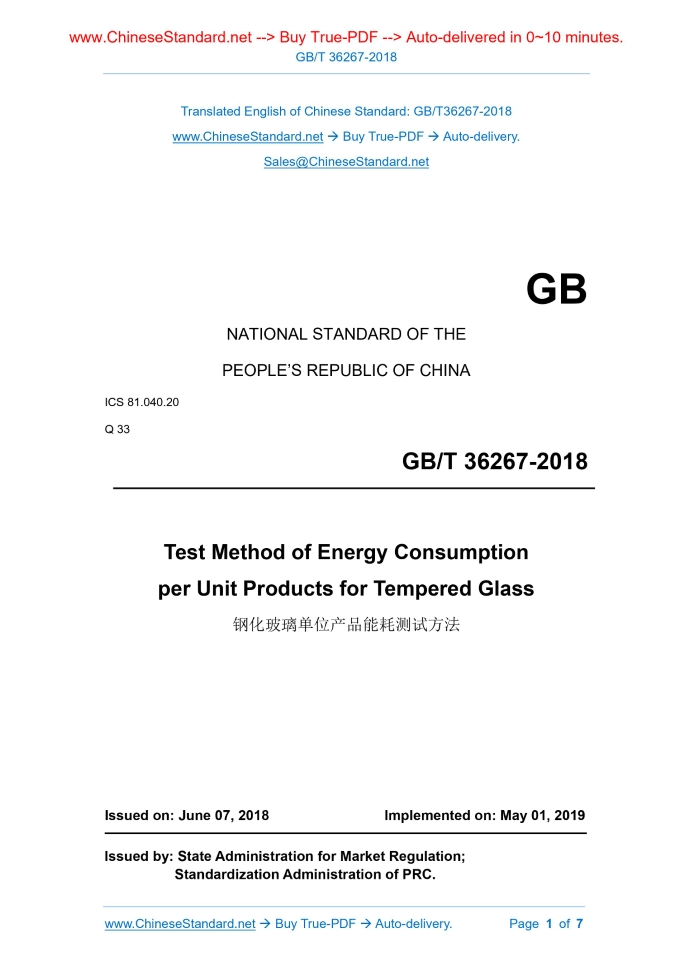 GB/T 36267-2018: Test method of energy consumption per unit products for tempered glass Delivery: 9 seconds. True-PDF full-copy in English & invoice will be downloaded + auto-delivered via email. See step-by-step procedure Status: Valid