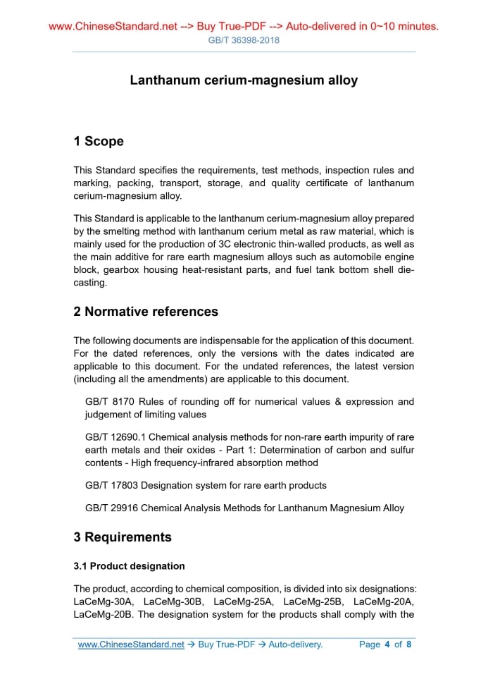 GB/T 36398-2018: Lanthanum cerium-magnesium alloy Delivery: 9 seconds. True-PDF full-copy in English & invoice will be downloaded + auto-delivered via email. See step-by-step procedure Status: Valid