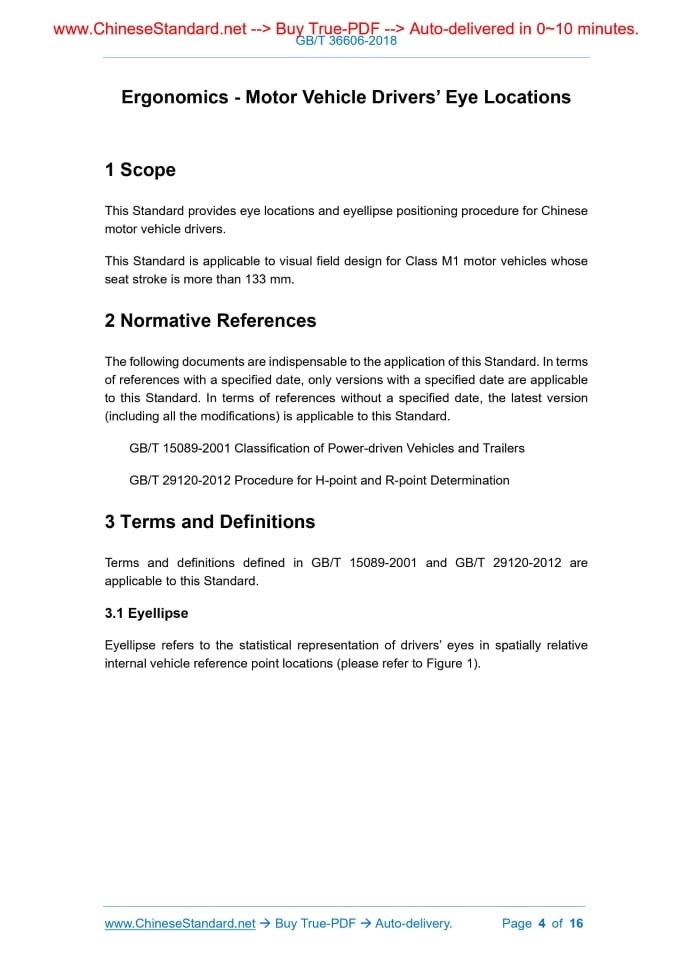 GB/T 36606-2018: Ergonomics - Motor Vehicle Drivers Eye Locations Delivery: 9 seconds. True-PDF full-copy in English & invoice will be downloaded + auto-delivered via email. See step-by-step procedure Status: Valid