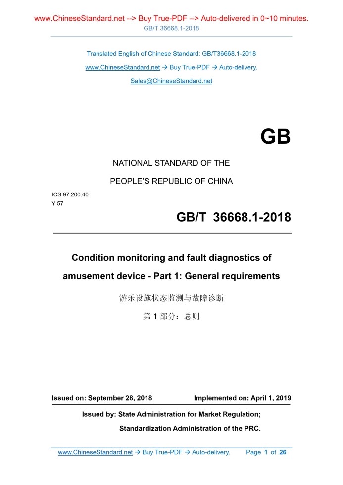 GB/T 36668.1-2018: Condition monitoring and fault diagnostics of amusement device - Part 1: General requirements Delivery: 9 seconds. True-PDF full-copy in English & invoice will be downloaded + auto-delivered via email. See step-by-step procedure Status: Valid