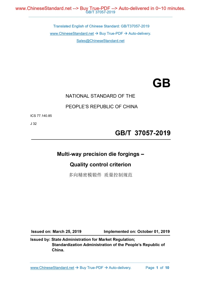 GB/T 37057-2019: Multi-way precision die forgings - Quality control criterion Delivery: 9 seconds. True-PDF full-copy in English & invoice will be downloaded + auto-delivered via email. See step-by-step procedure Status: Valid