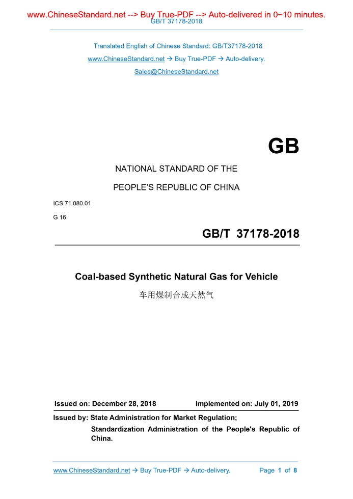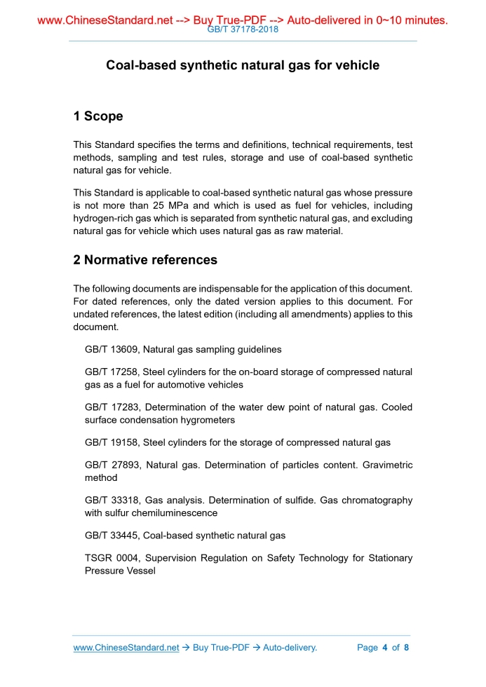 GB/T 37178-2018: Coal-based synthetic natural gas for vehicle Delivery: 9 seconds. True-PDF full-copy in English & invoice will be downloaded + auto-delivered via email. See step-by-step procedure Status: Valid