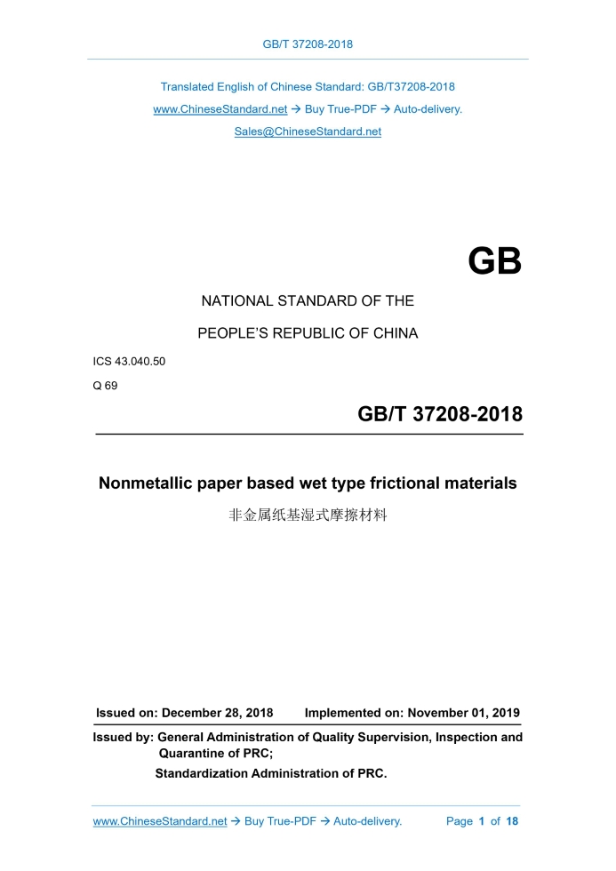 GB/T 37208-2018: Nonmetallic paper based wet type frictional materials Delivery: 9 seconds. True-PDF full-copy in English & invoice will be downloaded + auto-delivered via email. See step-by-step procedure Status: Valid