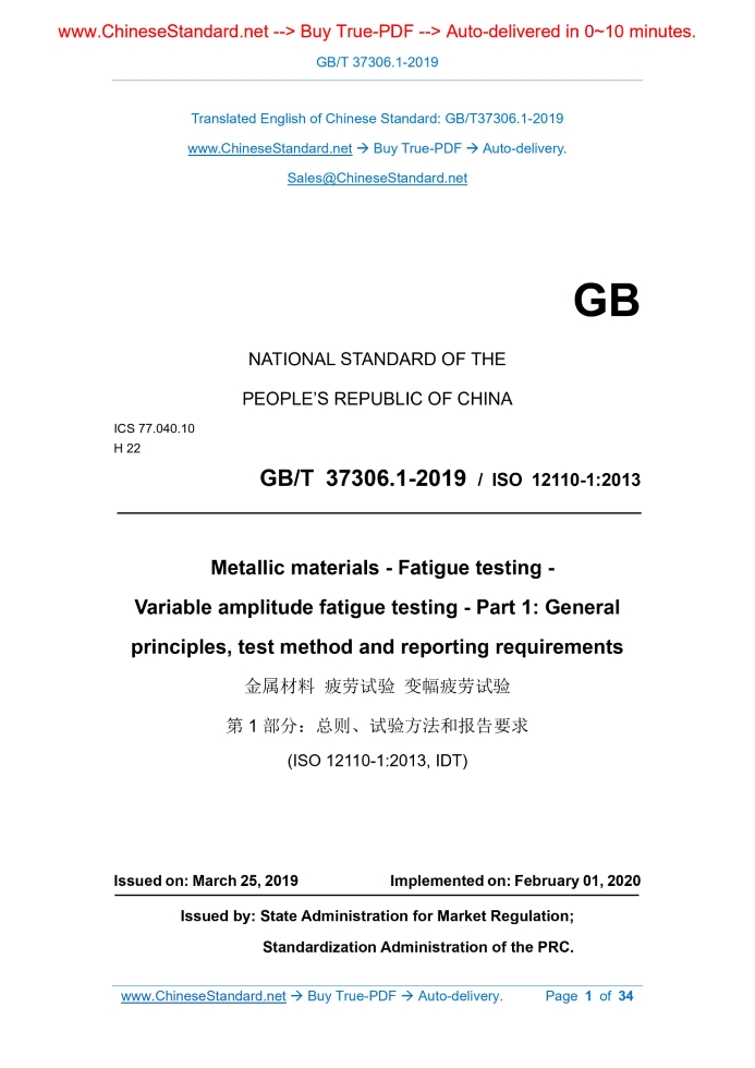 GB/T 37306.1-2019: Metallic materials -- Fatigue testing -- Variable amplitude fatigue testing -- Part 1: General principles, test method and reporting requirements Delivery: 9 seconds. True-PDF full-copy in English & invoice will be downloaded + auto-delivered via email. See step-by-step procedure Status: Valid