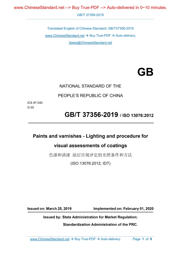 GB/T 37356-2019: Paints and varnishes - Lighting and procedure for visual assessments of coatings Delivery: 9 seconds. True-PDF full-copy in English & invoice will be downloaded + auto-delivered via email. See step-by-step procedure Status: Valid
