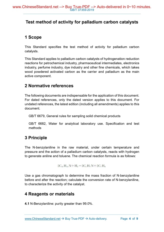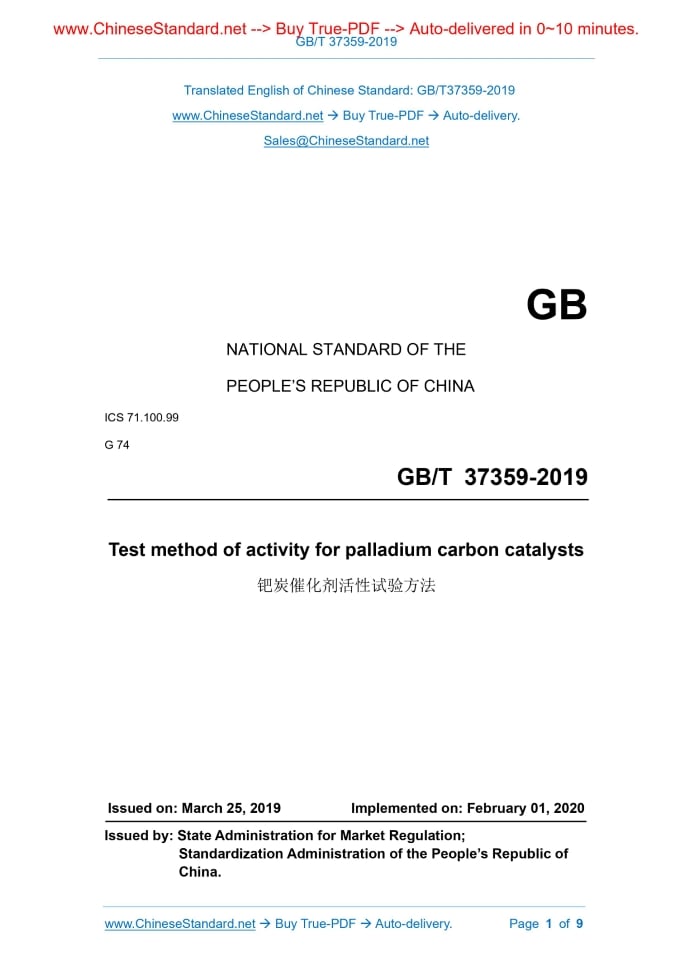 GB/T 37359-2019: Test method of activity for palladium carbon catalysts Delivery: 9 seconds. True-PDF full-copy in English & invoice will be downloaded + auto-delivered via email. See step-by-step procedure Status: Valid