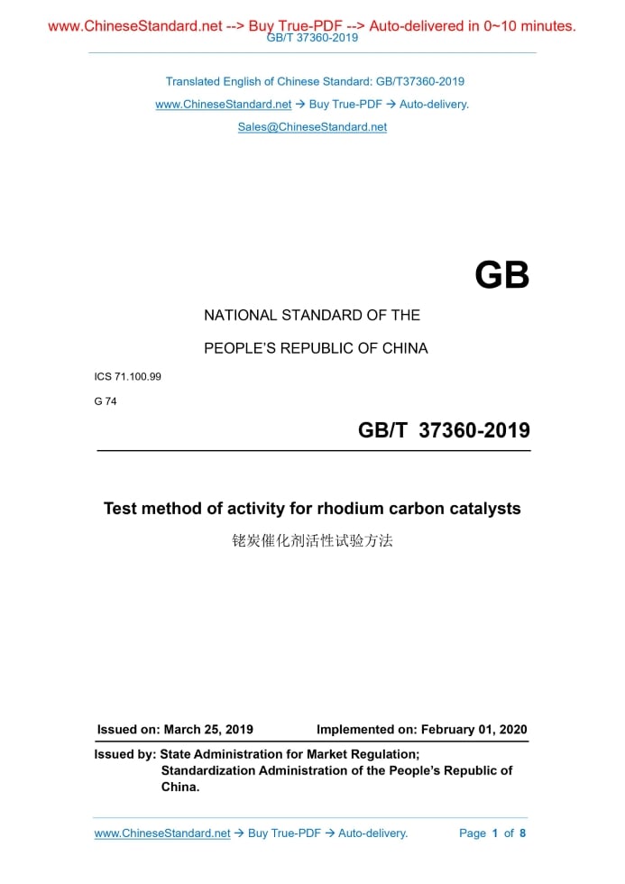 GB/T 37360-2019: Test method of activity for rhodium carbon catalysts Delivery: 9 seconds. True-PDF full-copy in English & invoice will be downloaded + auto-delivered via email. See step-by-step procedure Status: Valid