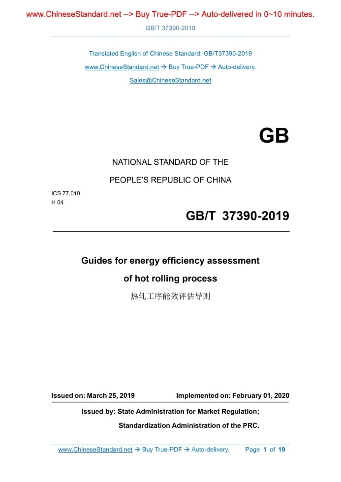 GB/T 37390-2019: Guides for energy efficiency assessment of hot rolling process Delivery: 9 seconds. True-PDF full-copy in English & invoice will be downloaded + auto-delivered via email. See step-by-step procedure Status: Valid