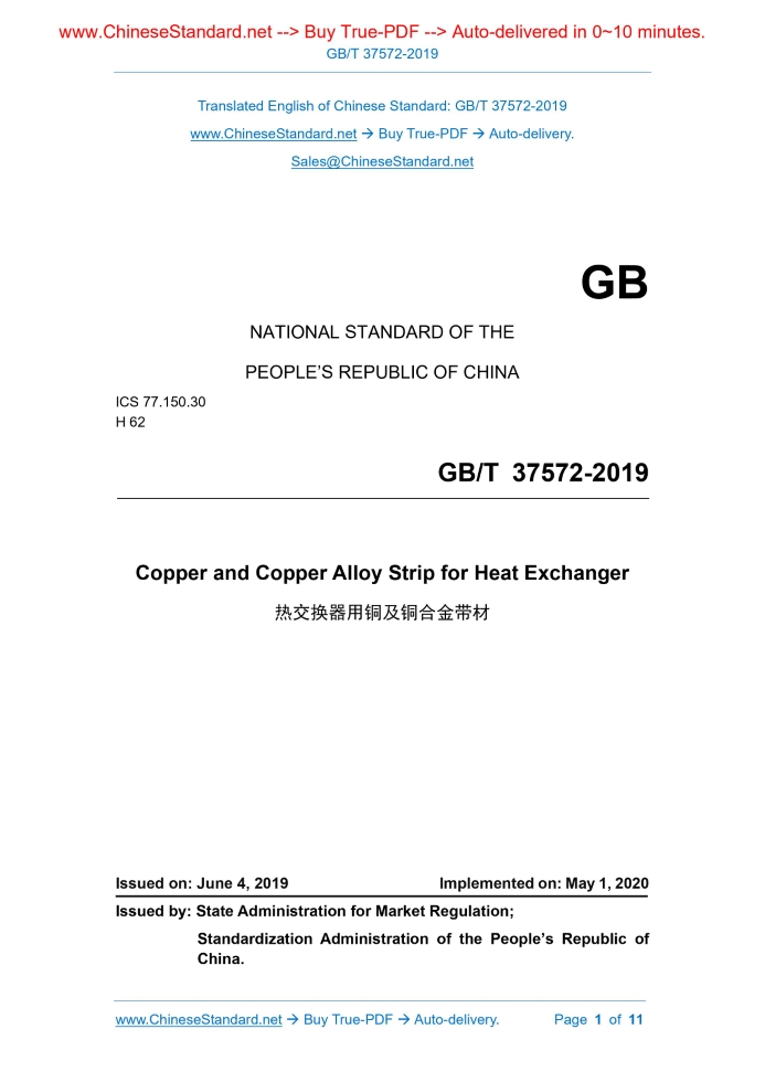 GB/T 37572-2019: Copper and Copper Alloy Strip for Heat Exchanger Delivery: 9 seconds. True-PDF full-copy in English & invoice will be downloaded + auto-delivered via email. See step-by-step procedure Status: Valid