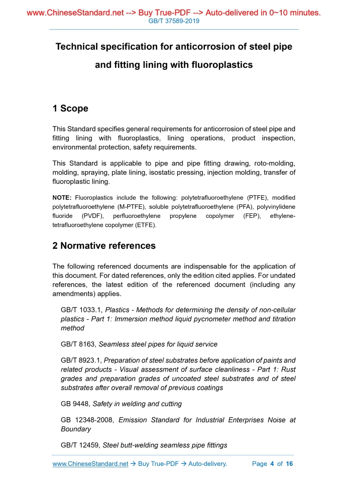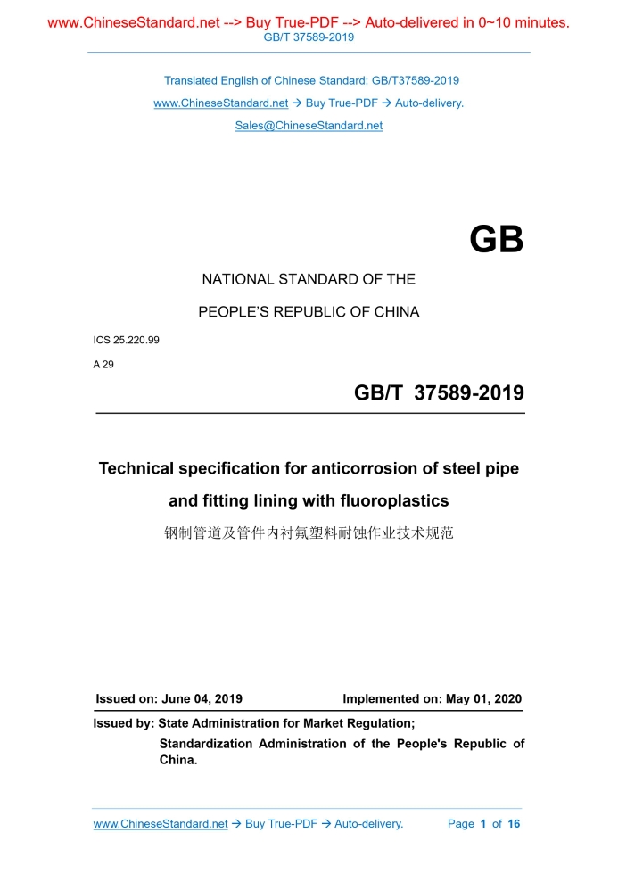 GB/T 37589-2019: Technical specification for anticorrosion of steel pipe and fitting lining with fluoroplastics Delivery: 9 seconds. True-PDF full-copy in English & invoice will be downloaded + auto-delivered via email. See step-by-step procedure Status: Valid