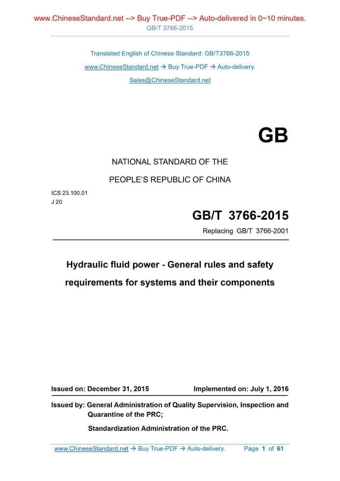 GB/T 3766-2015: Hydraulic fluid power -- General rules and safety requirements for systems and their components Delivery: 9 seconds. True-PDF full-copy in English & invoice will be downloaded + auto-delivered via email. See step-by-step procedure Status: Valid GB/T 3766: Historical versions