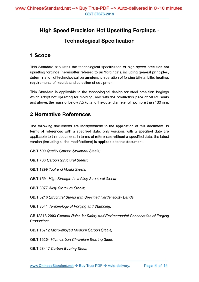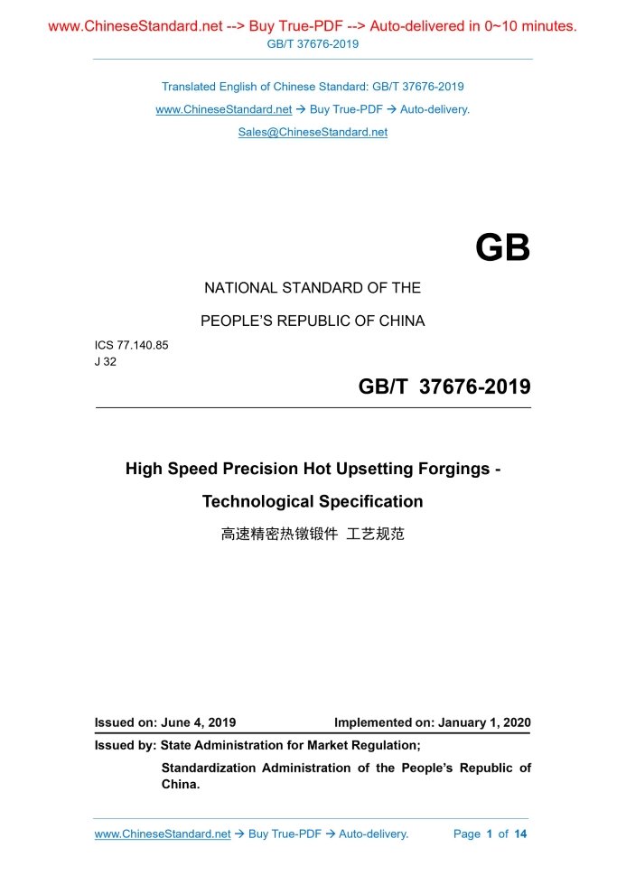 GB/T 37676-2019: High Speed Precision Hot Upsetting Forgings - Technological Specification Delivery: 9 seconds. True-PDF full-copy in English & invoice will be downloaded + auto-delivered via email. See step-by-step procedure Status: Valid