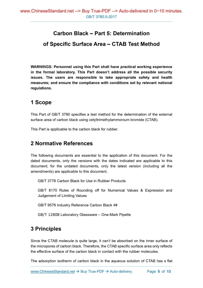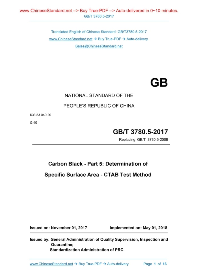 GB/T 3780.5-2017: Carbon Black - Part 5: Determination of Specific Surface Area - CTAB Test Method Delivery: 9 seconds. True-PDF full-copy in English & invoice will be downloaded + auto-delivered via email. See step-by-step procedure Status: Valid GB/T 3780.5: Historical versions