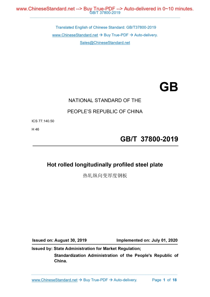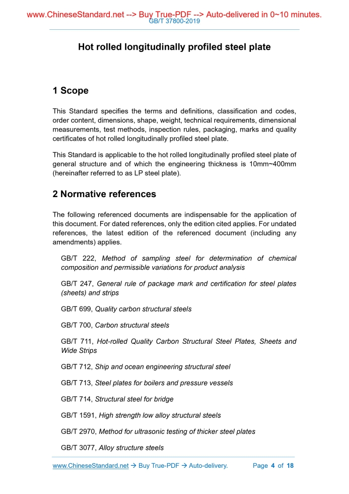 GB/T 37800-2019: Hot rolled longitudinally profiled steel plate Delivery: 9 seconds. True-PDF full-copy in English & invoice will be downloaded + auto-delivered via email. See step-by-step procedure Status: Valid