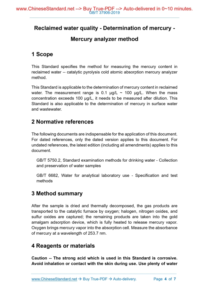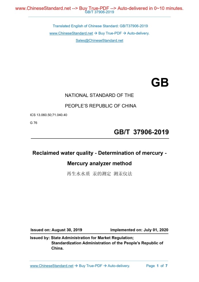 GB/T 37906-2019: Reclaimed water quality - Determination of mercury - Mercury analyzer method Delivery: 9 seconds. True-PDF full-copy in English & invoice will be downloaded + auto-delivered via email. See step-by-step procedure Status: Valid