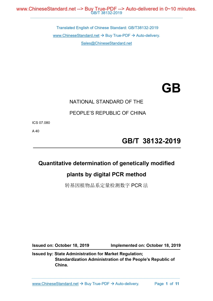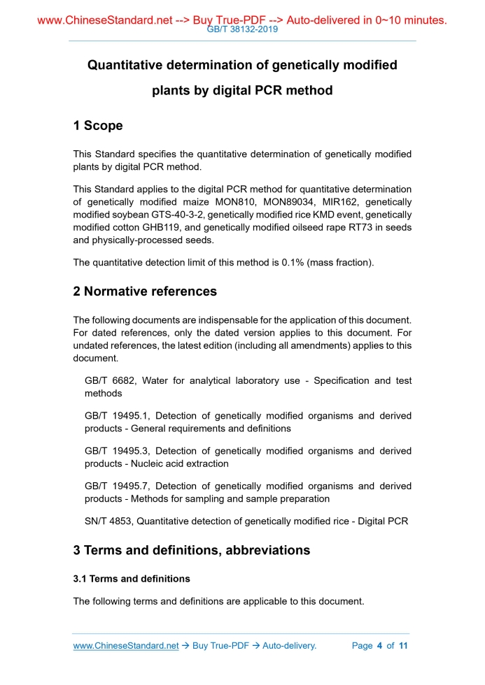 GB/T 38132-2019: Quantitative determination of genetically modified plants by digital PCR method Delivery: 9 seconds. True-PDF full-copy in English & invoice will be downloaded + auto-delivered via email. See step-by-step procedure Status: Valid