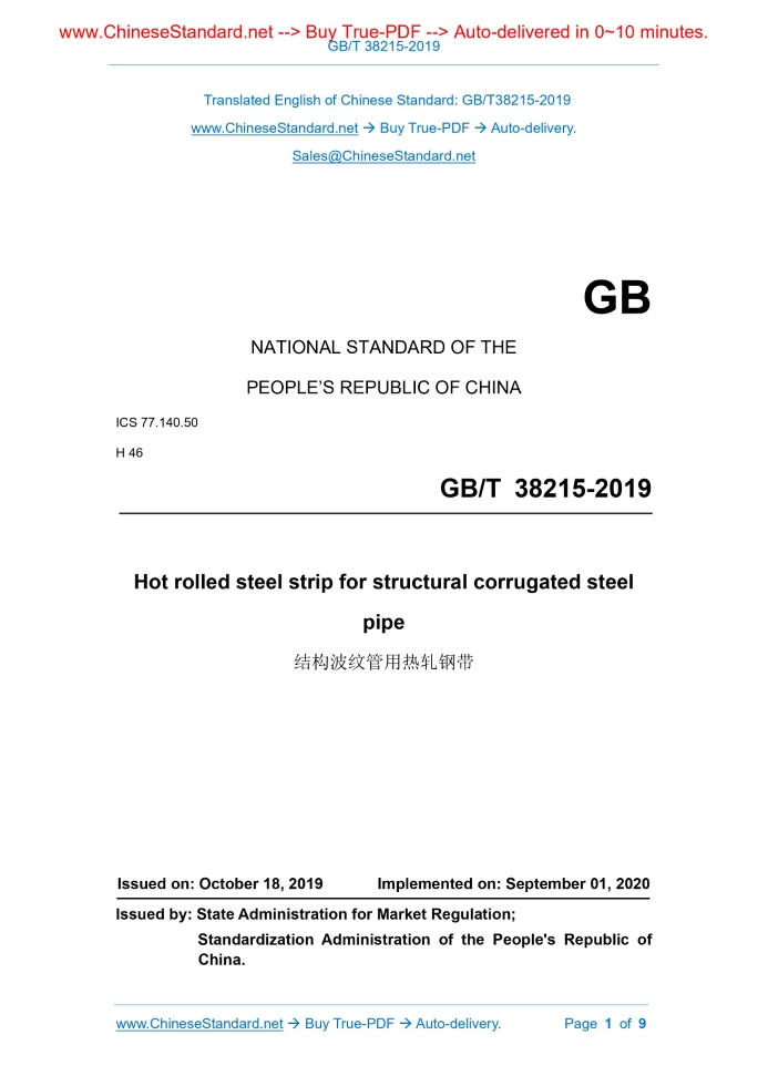 GB/T 38215-2019: Hot rolled steel strip for structural corrugated steel pipe Delivery: 9 seconds. True-PDF full-copy in English & invoice will be downloaded + auto-delivered via email. See step-by-step procedure Status: Valid