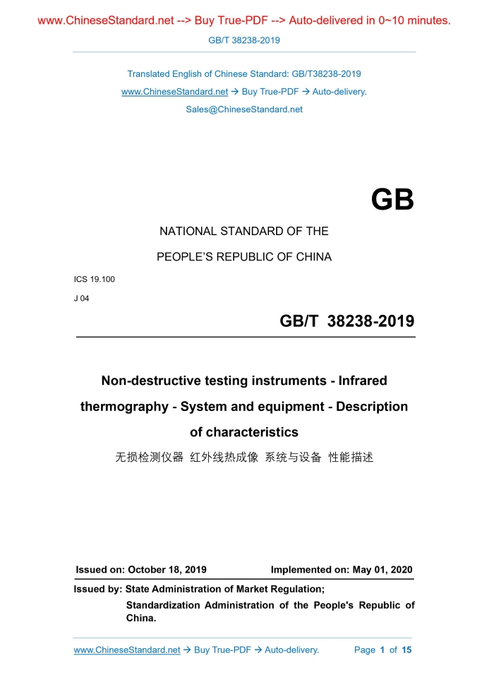 GB/T 38238-2019: Non-destructive testing instruments - Infrared thermography - System and equipment - Description of characteristics Delivery: 9 seconds. True-PDF full-copy in English & invoice will be downloaded + auto-delivered via email. See step-by-step procedure Status: Valid